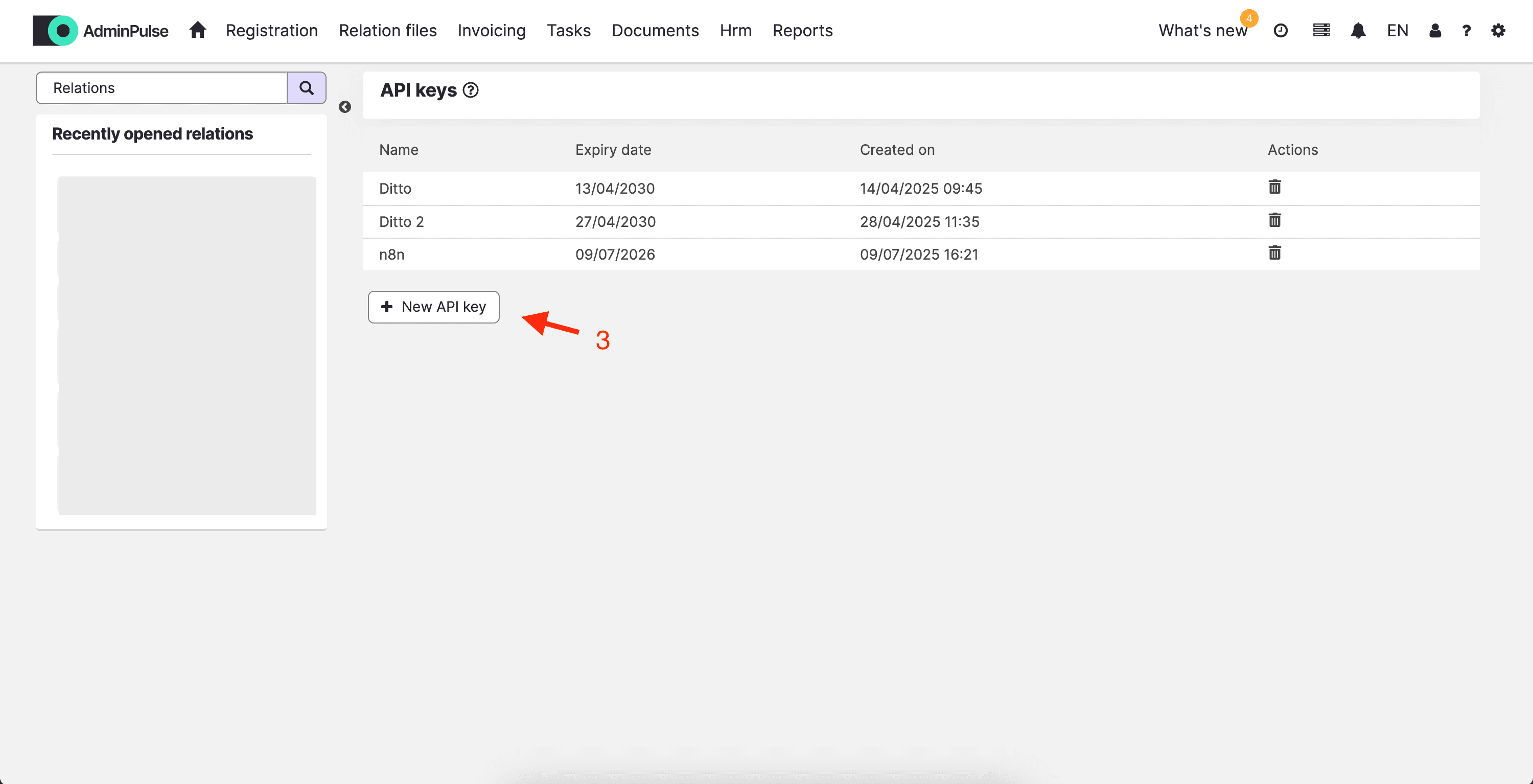 2) Click on '+ New API key':